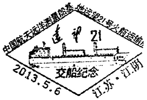 | 645 | First voyage of YW-21 rocket supply ship (Zweckinschrift, Schiff) | 2144 | Jiangyin | 06.05.2013 | CN |