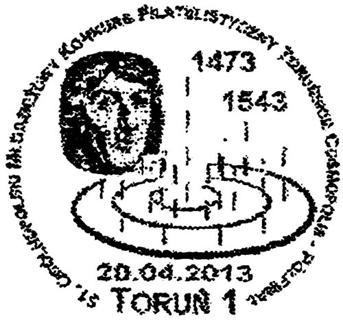 | 92 | 51 Landesweiter Jugendphilateliewettbewerb „Cosmopolis von Thorun“ (Porträt Kopernikus mit stilisierter Darstellung des heliozentrischen Sonnensystems) | | Toruň 1 | 20.04.2013 | PL |